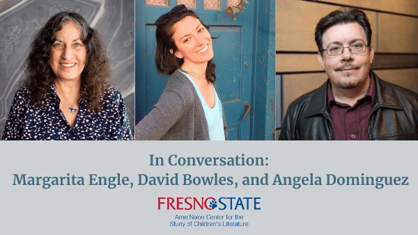Join the Arne Nixon Center (ANC) for the Study of Children’s Literature at the Henry Madden Library for A Conversation with Margarita Engle, David Bowles, and Angela Dominguez. The three distinguished Latinx children’s authors will discuss the impact of their work for children and their experiences publishing diverse children’s literature. It will be the first event in our Diversity Conversation Series, a focused series about diversity in children’s literature from the viewpoint of authors, illustrators, practitioners, publishers, and scholars. The event is scheduled for Zoom on April 29, 2021 from 4 p.m. to 5 p.m.