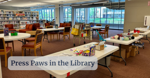 For the last few weeks of the semester, myself along with a crew of library workers and staff from our Student Health and Counseling Center are excited to formally announce our wellness campaign, Press Paws at the Fresno State Library. Recognizing National Stress Awareness Month and the finals season, we want to encourage students to Press Paws and take a break to reduce their stress.