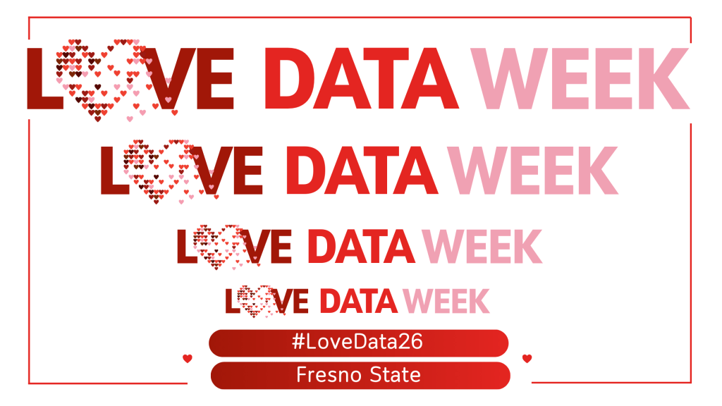 Fresno State Library is participating in Love Data Week, an international celebration of data, with in-person and virtual events. There is something for everyone, whether you’re an undergraduate wanting to find your assignment data quicker or faculty needing to manage complex research data.